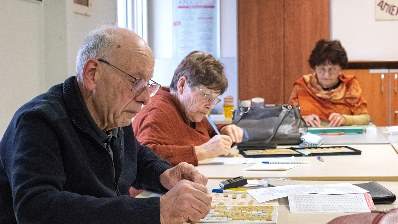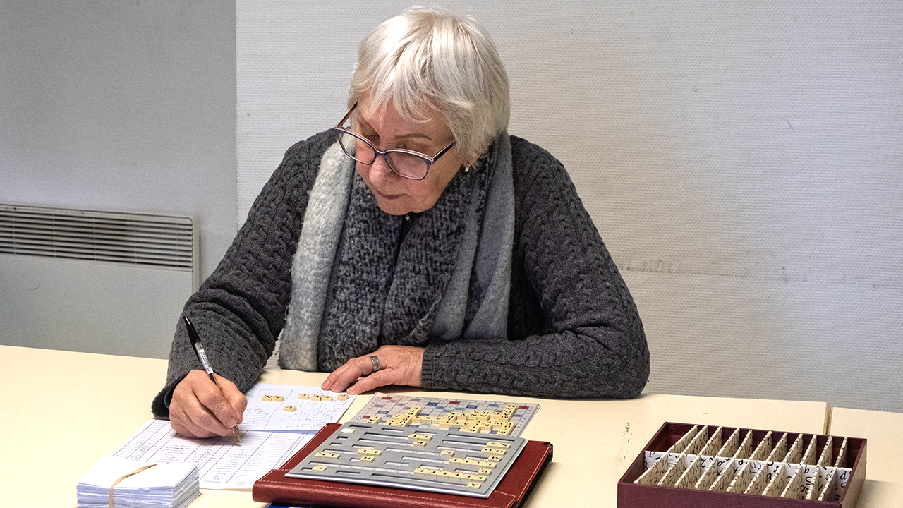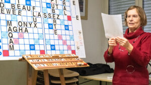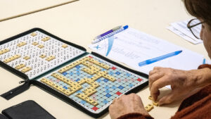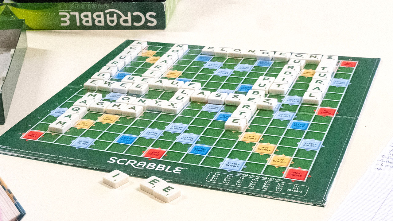 Dans le Scrabble Duplicate, chaque joueur dispose d’une grille et une grande grille est disposée face à eux. Elles sont toutes identiques.
